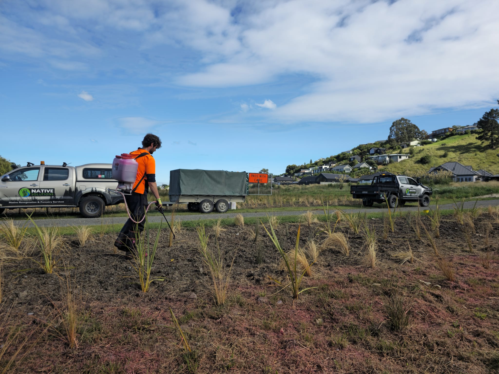 Pests can decimate you newly planted Native species. Wildlife such as Hare, Deer, Geese, and Pukeko’s, to name a few, can destroy your native trees and native bushes so pest control protection against these animals is key. We also have to ensure that the plants are protected from frost, wind and drought.